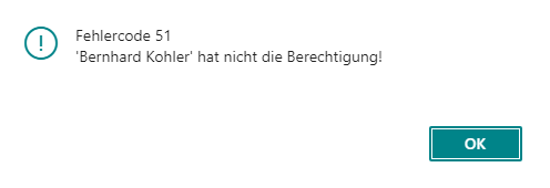 Sollte der aktuelle Verkäufer nicht über das Recht für die Durchführung eines Kassensturzes verfügen, wird dies mit folgender Hinweismeldung quittiert: